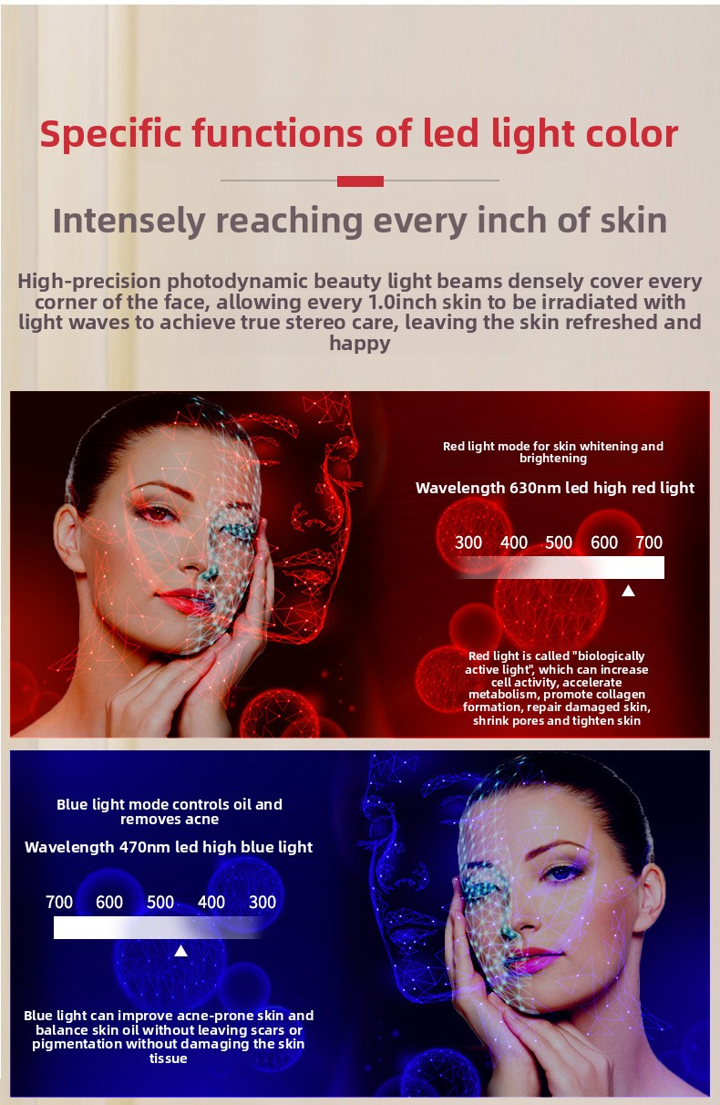Targeted LED light wavelengths gently penetrate the skin to support natural skin rejuvenation. With regular use, skin appears smoother, brighter, and more refreshed.