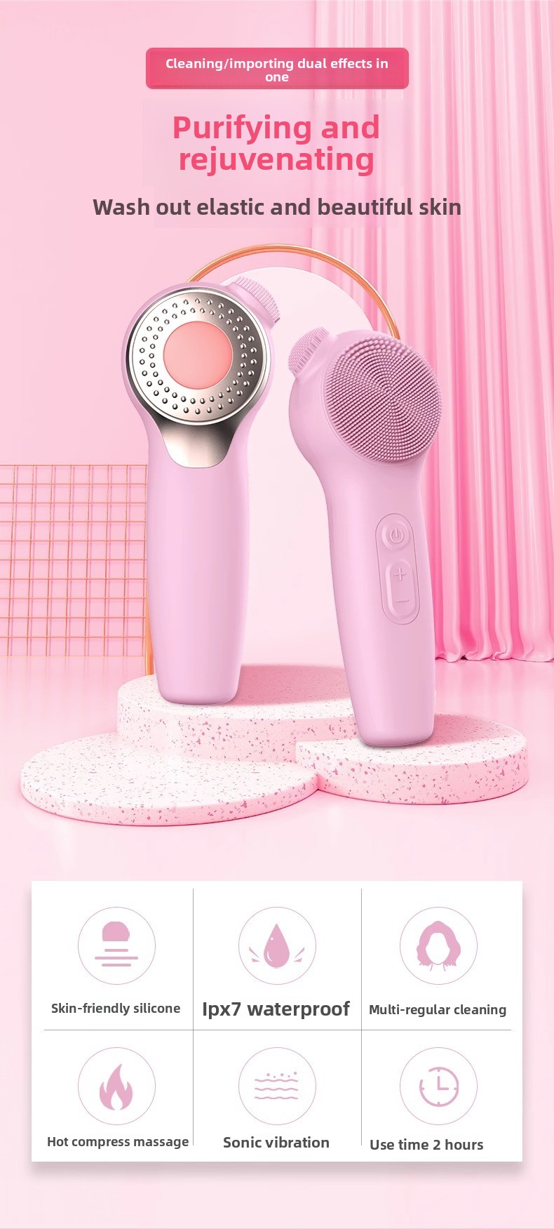 This facial cleansing device uses soft silicone bristles and sonic vibration technology to effectively remove dirt, oil, makeup residue, and dead skin cells from deep within your pores. Regular use helps improve skin texture, reduce excess oil, and leave your skin feeling fresh, smooth, and glowing.